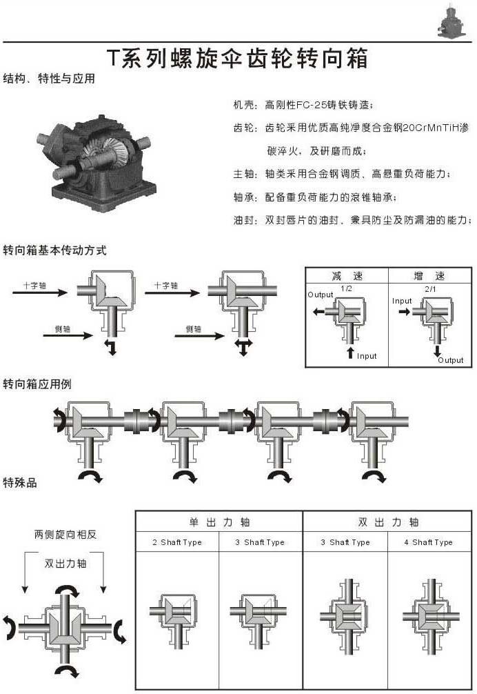 T系列螺旋傘齒輪轉(zhuǎn)向箱結(jié)構(gòu).特性和應(yīng)用,傳動(dòng)方式,應(yīng)用例