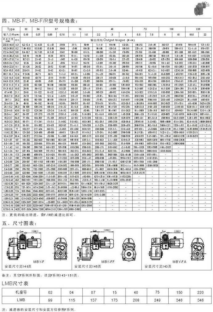 MB-F , MB-F/R型號(hào)規(guī)格表尺寸圖表LMB尺寸表