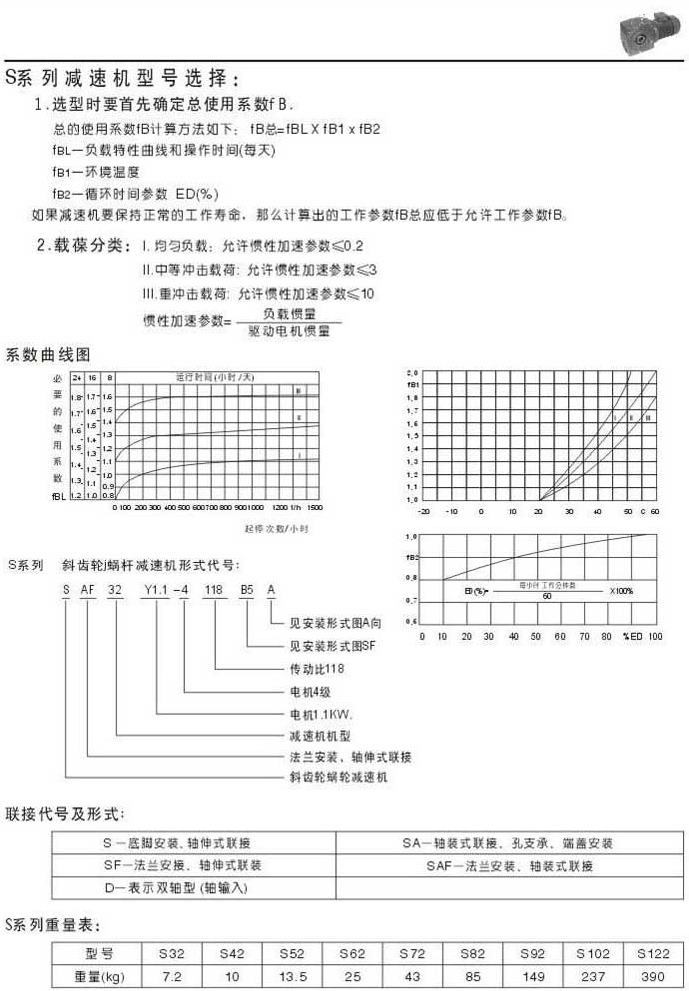 S系列減速機(jī)型號表示系數(shù)曲線圖聯(lián)結(jié)代號及形式重量表